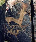 В 160 километрах от г. Алматы простирается ущелье "Тамгалы" . Здесь обнаружены тысячи неизвестных наскальных рисунков. Это ущелье является настоящей галереей древнего искусства. Стены ущелья покрыты изображениями животных и жизненными сценами того времени, высеченными металлическими зубьями.